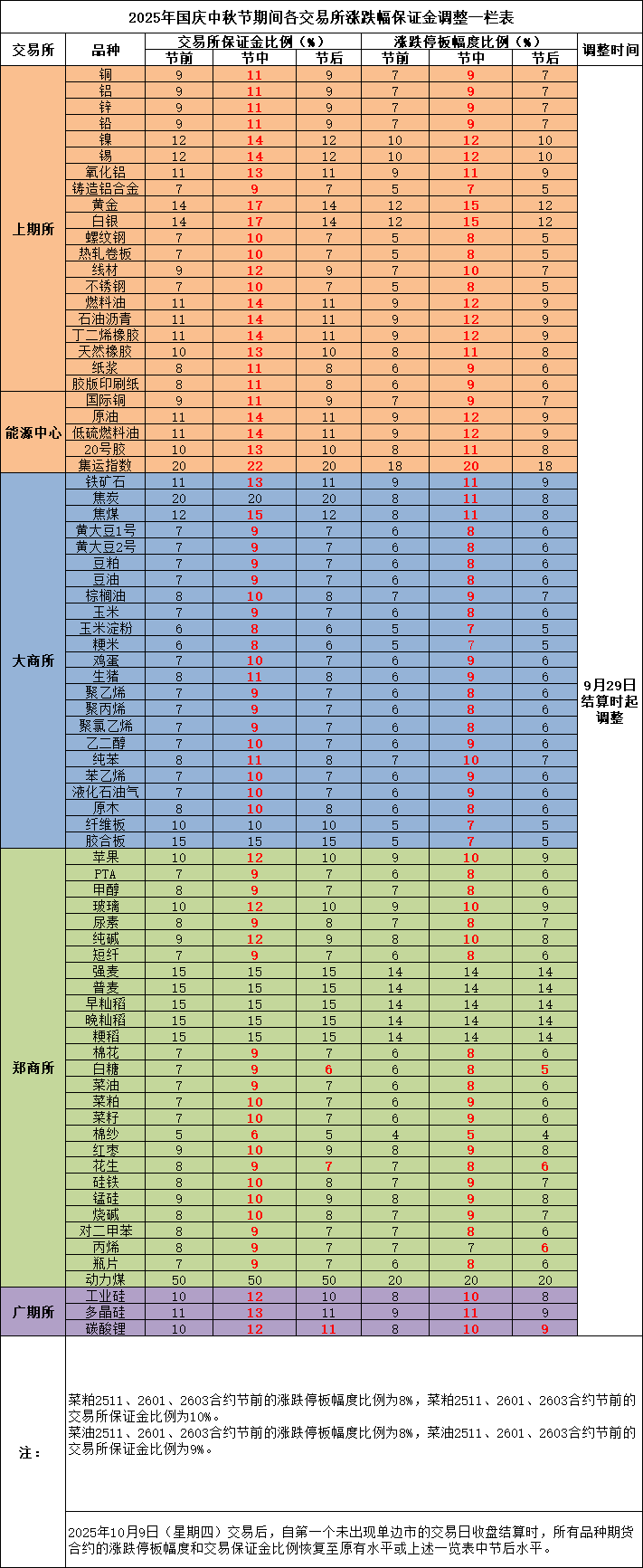 尊敬的客户:国内期货交易所10月1日(周三)至10月8日(周三)中秋国庆假日休市,9月30日(周二)当晚无夜盘,10月9日(周四)恢复日夜盘交易。我司将于9月26日(周五)结算时起提高公司保证金比例,详情请登录公司官网查询。请及时调整好仓位,保证资金充足!东亚期货全体员工预祝您中秋国庆快乐!